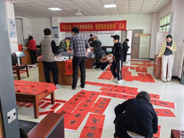 上午,邱楚莲及中国画学会书画家们挥毫沷墨,为柏塘镇平安社区群众写春联、画年画、送福字和挥春,活动现场热闹非常,深受社区群众欢迎和好评。