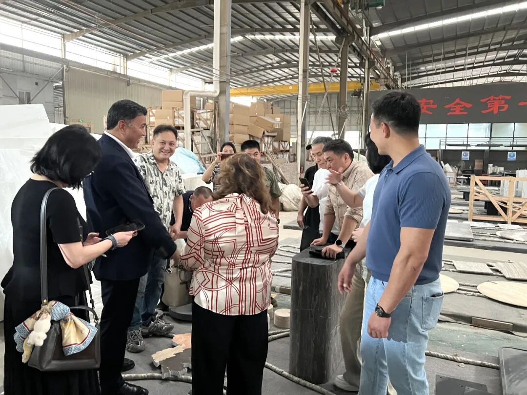 在广东启现智能家居有限公司,考察团现场观摩了云浮石材产业从设计、加工到智能家居应用的全链条生产流程,并对云浮企业将传统石材与智能化、绿色化理念相结合的创新成果表示高度赞赏。